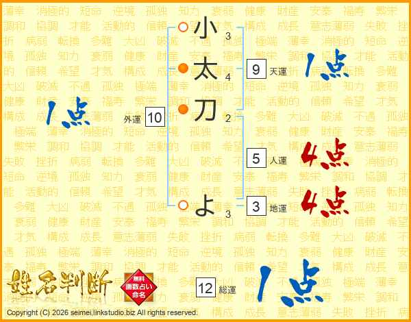 小太刀よさんの総運は12画の1点!