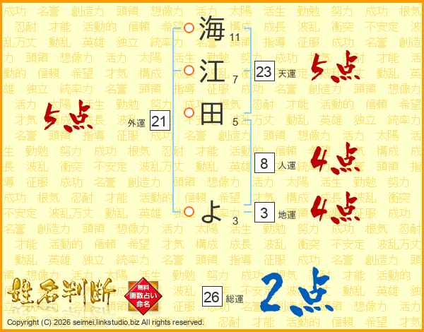 海江田よさんの総運は26画の2点!