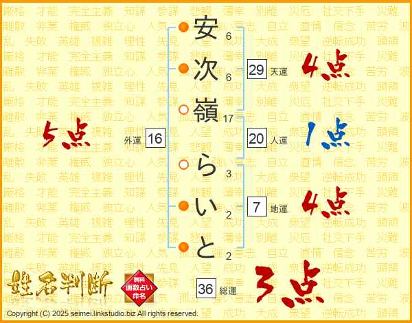 安次嶺らいとさんの総運は36画の3点!