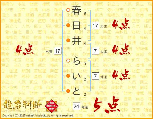 春(9画)日(4画)井(4画) ら(3画)い(2画)と(2画)