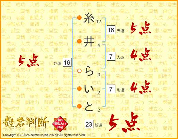 糸井らいとさんの総運は23画の5点!