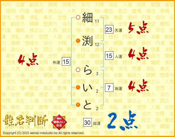 細渕らいとさんの総運は30画の2点!
