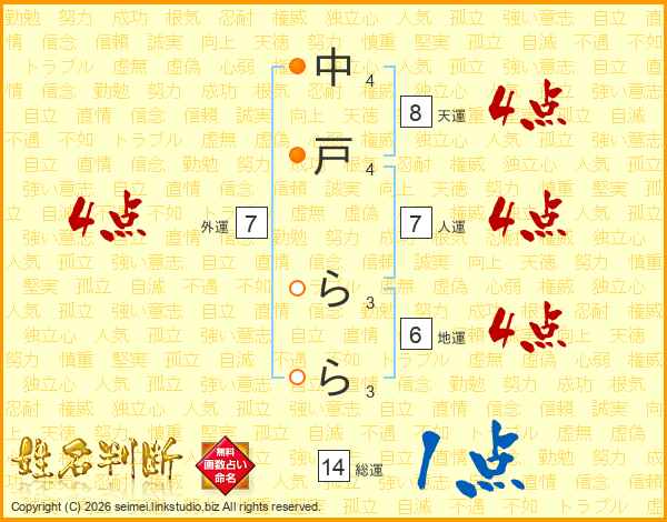 中戸ららさんの総運は14画の1点!