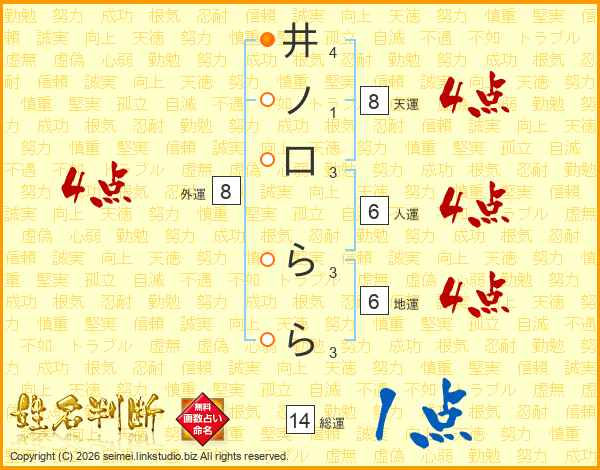 井ノ口ららさんの総運は14画の1点!