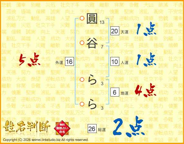 圓(13画)谷(7画) ら(3画)ら(3画)