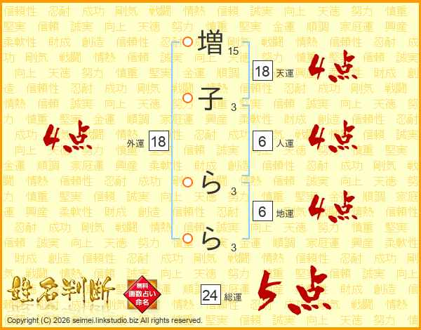 増(15画)子(3画) ら(3画)ら(3画)