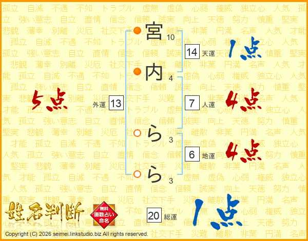 宮内ららさんの総運は20画の1点!