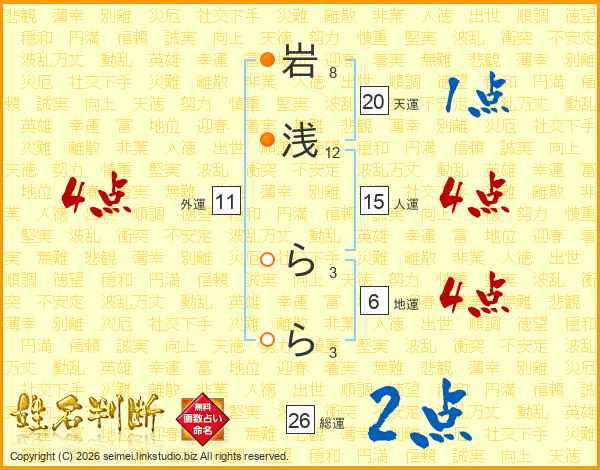 岩浅ららさんの総運は26画の2点!