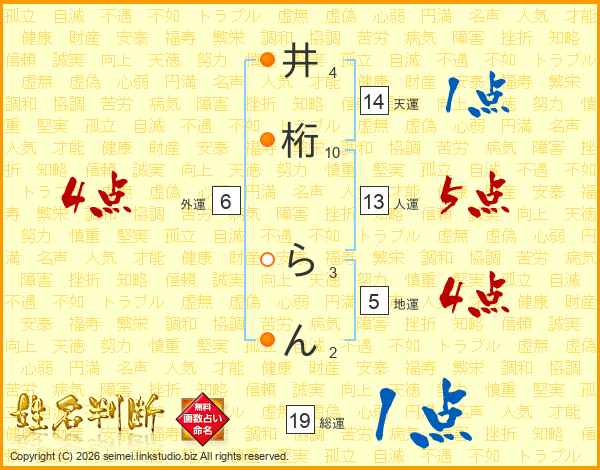 井(4画)桁(10画) ら(3画)ん(2画)
