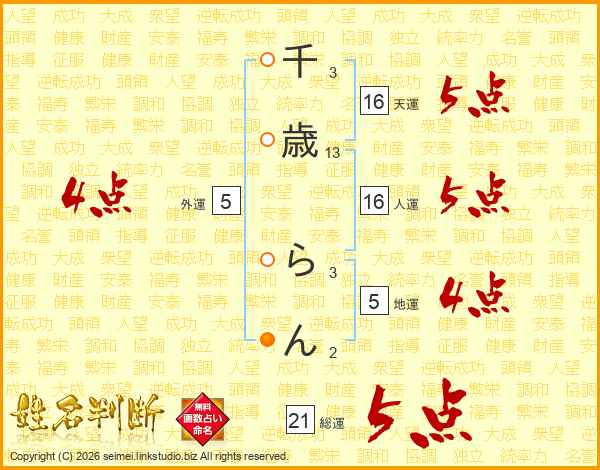千歳らんさんの総運は21画の5点!