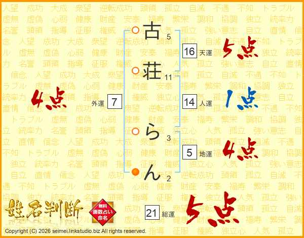 古荘らんさんの総運は21画の5点!