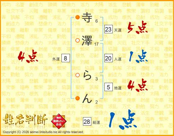 寺澤らんさんの天運は23画の5点!