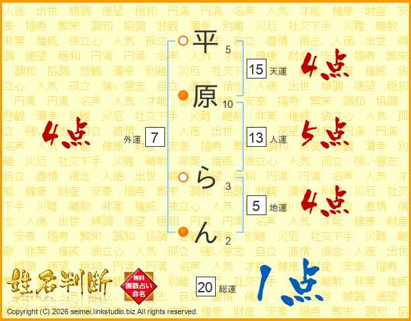 平原らんさんの総運は20画の1点!