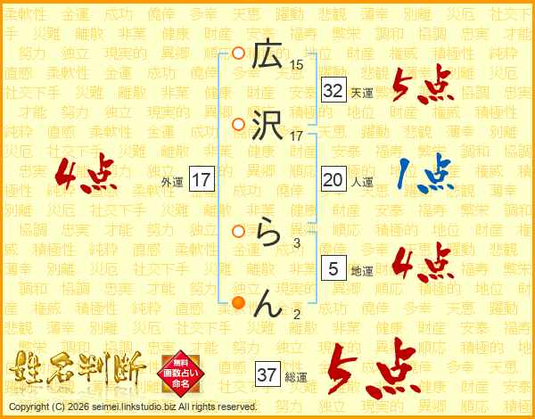 広沢らんさんの総運は37画の5点!