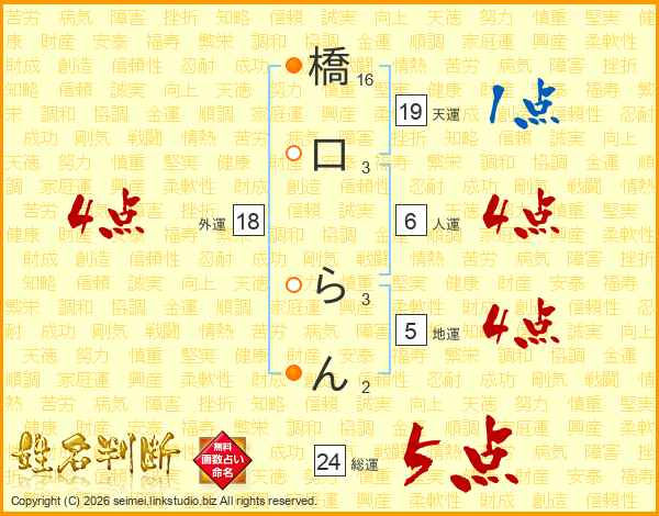 橋口らんさんの総運は24画の5点!