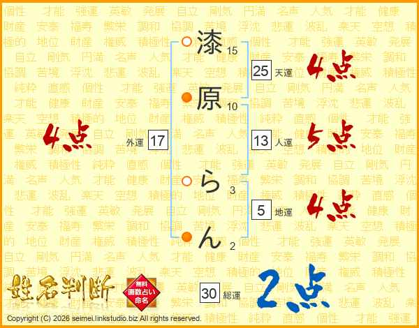 漆原らんさんの総運は30画の2点!
