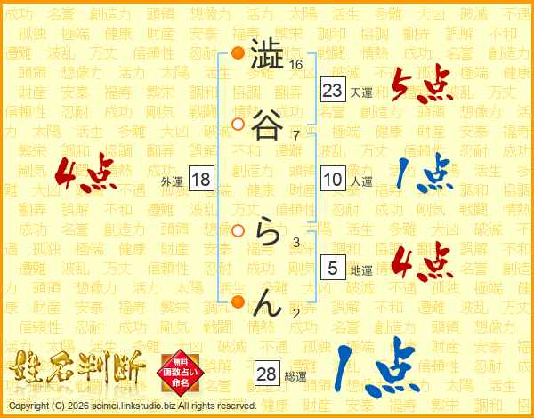 澁谷らんさんの総運は28画の1点!