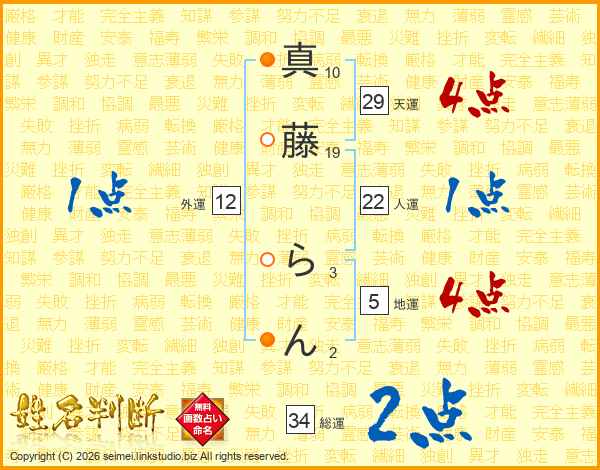 真藤らんさんの総運は34画の2点!