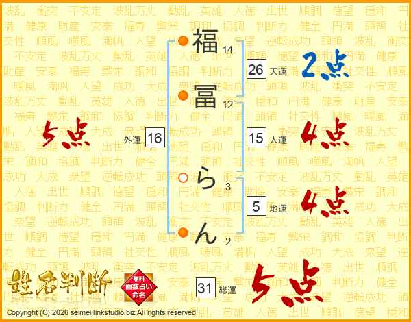 福冨らんさんの天運は26画の2点!