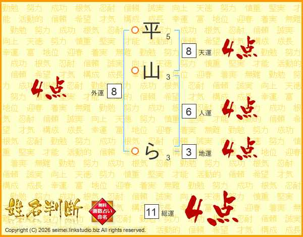 平山らさんの総運は11画の4点!