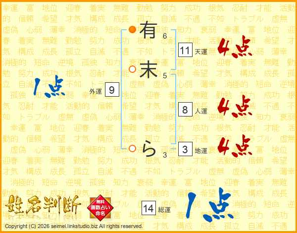 有末らさんの天運は11画の4点!