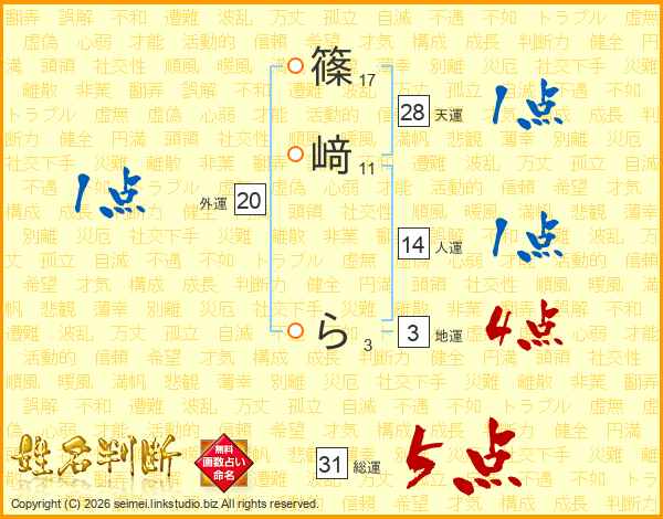 篠﨑らさんの総運は31画の5点!