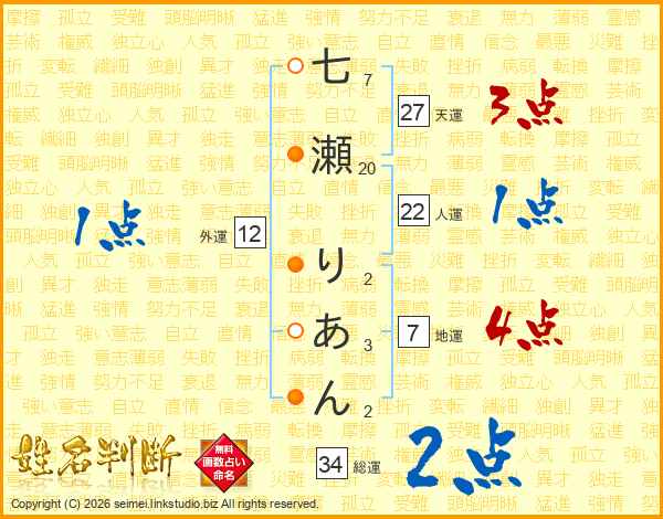 七瀬りあんさんの総運は34画の2点!