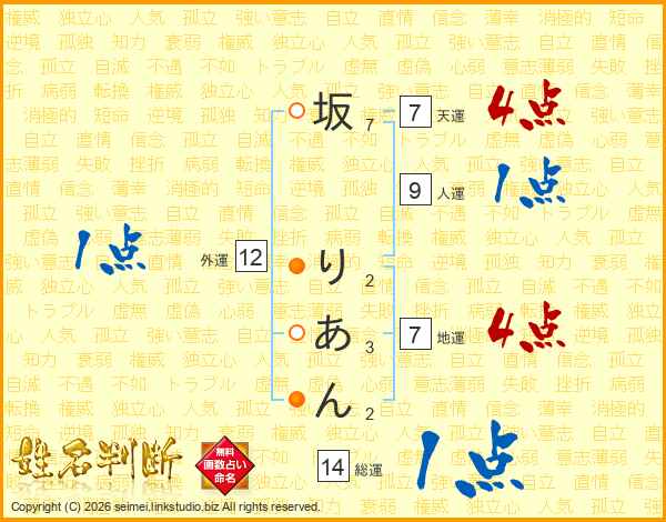 坂りあんさんの総運は14画の1点!