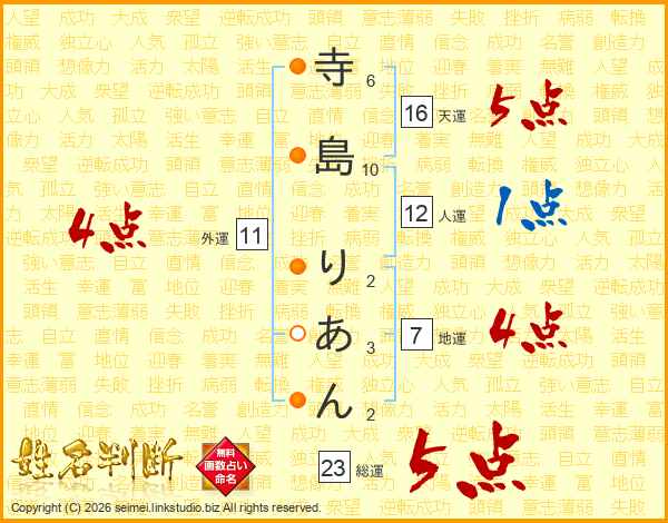 寺島りあんさんの総運は23画の5点!