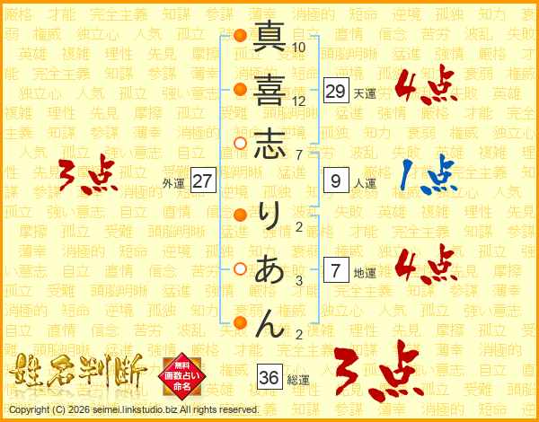 真喜志りあんさんの総運は36画の3点!