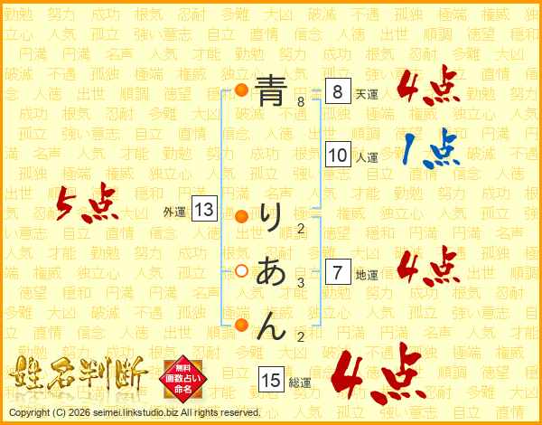 青りあんさんの総運は15画の4点!
