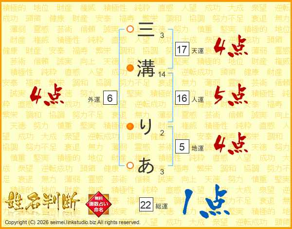 三溝りあさんの総運は22画の1点!