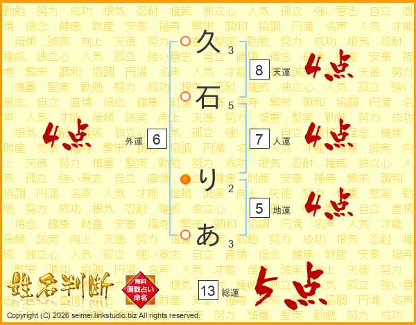 久石りあさんの総運は13画の5点!