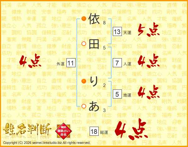 依田りあさんの総運は18画の4点!