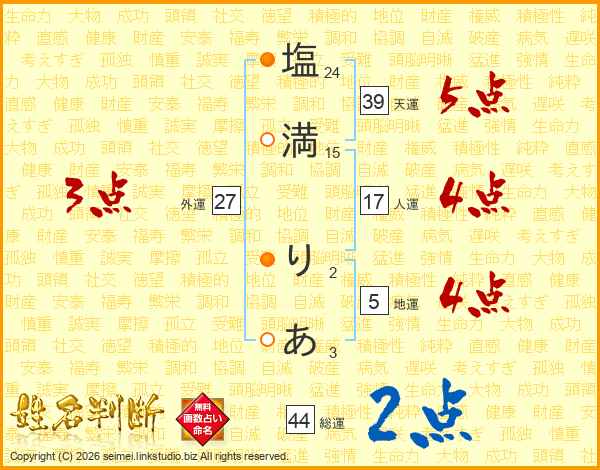 塩満りあさんの天運は39画の5点!