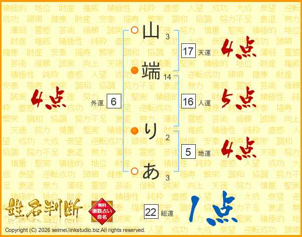 山端りあさんの天運は17画の4点!