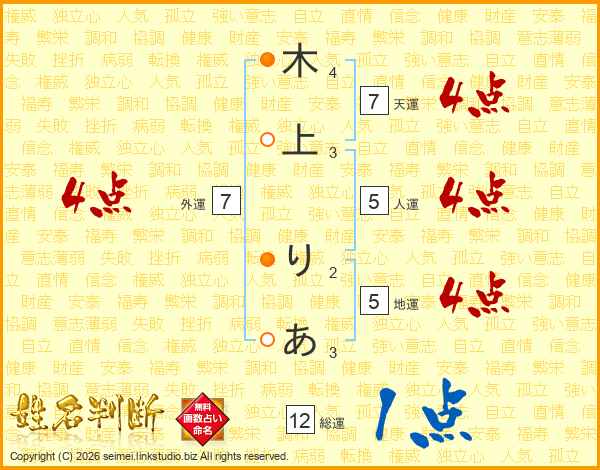 木上りあさんの外運は7画の4点!