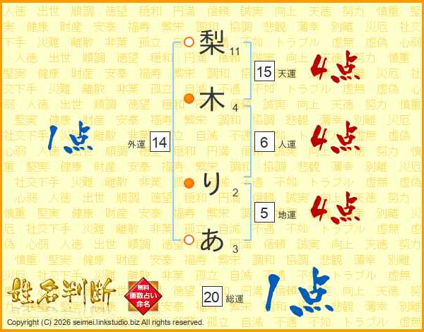 梨木りあさんの総運は20画の1点!