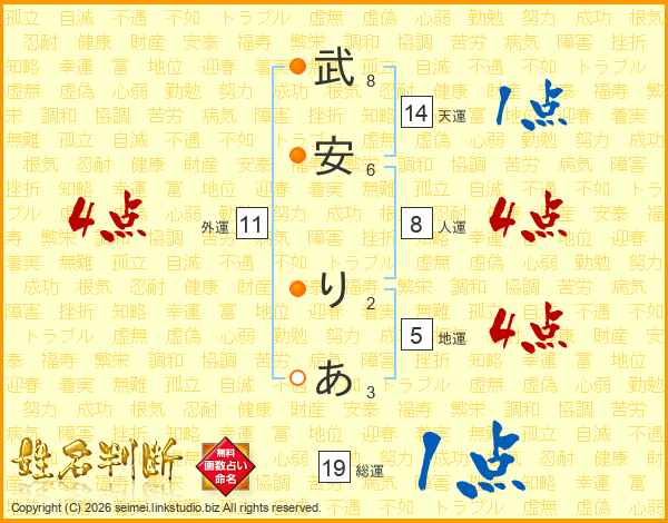 武安りあさんの総運は19画の1点!