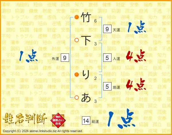 竹下りあさんの総運は14画の1点!