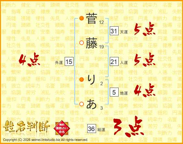 菅藤りあさんの天運は31画の5点!