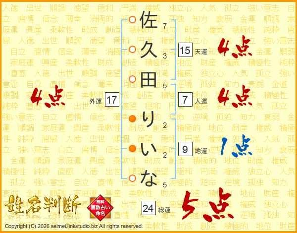 佐久田りいなさんの外運は17画の4点!