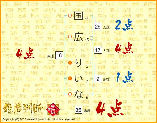 国広りいなさんの天運は26画の2点!