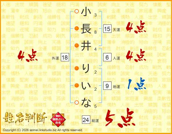 小長井りいなさんの総運は24画の5点!
