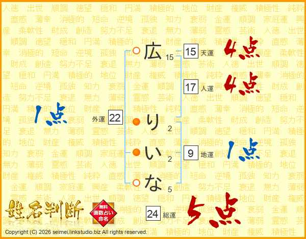 広りいなさんの総運は24画の5点!