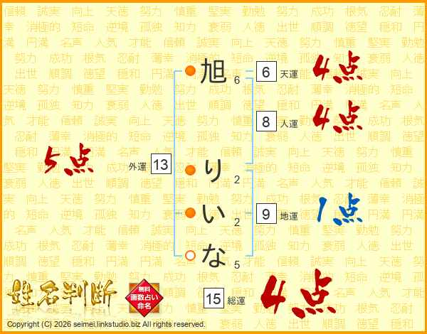 旭りいなさんの総運は15画の4点!