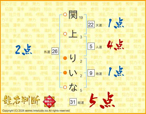 関上りいなさんの外運は26画の2点!