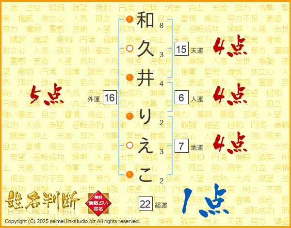 和久井りえこさんの総運は22画の1点!