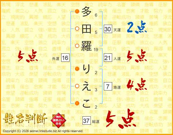 多田羅りえこさんの総運は37画の5点!