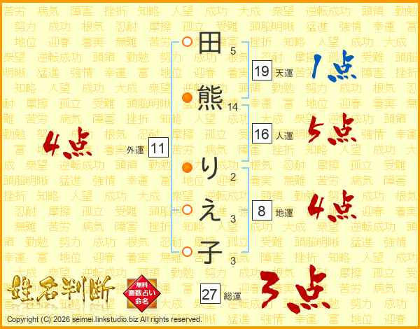 田熊りえ子さんの総運は27画の3点!